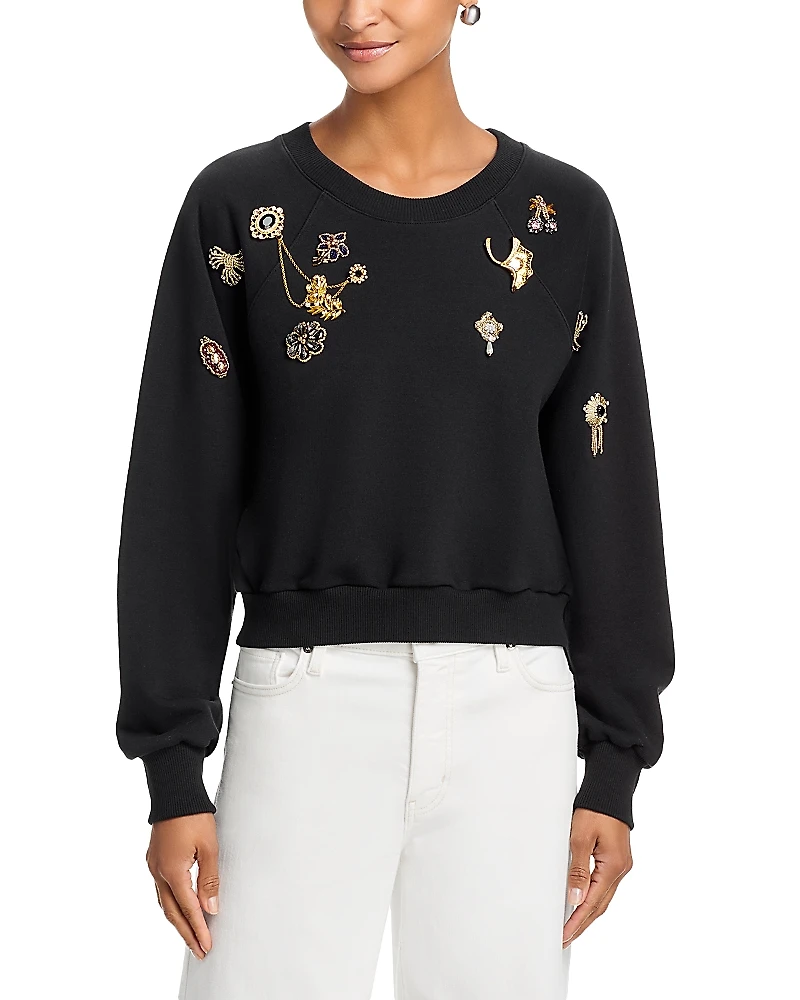 Cinq a Sept Jennifer Brooches Sweatshirt.Color:Black.Size:XS.Material:85% cotton/15% polyester.Hoodies & Sweatshirts.