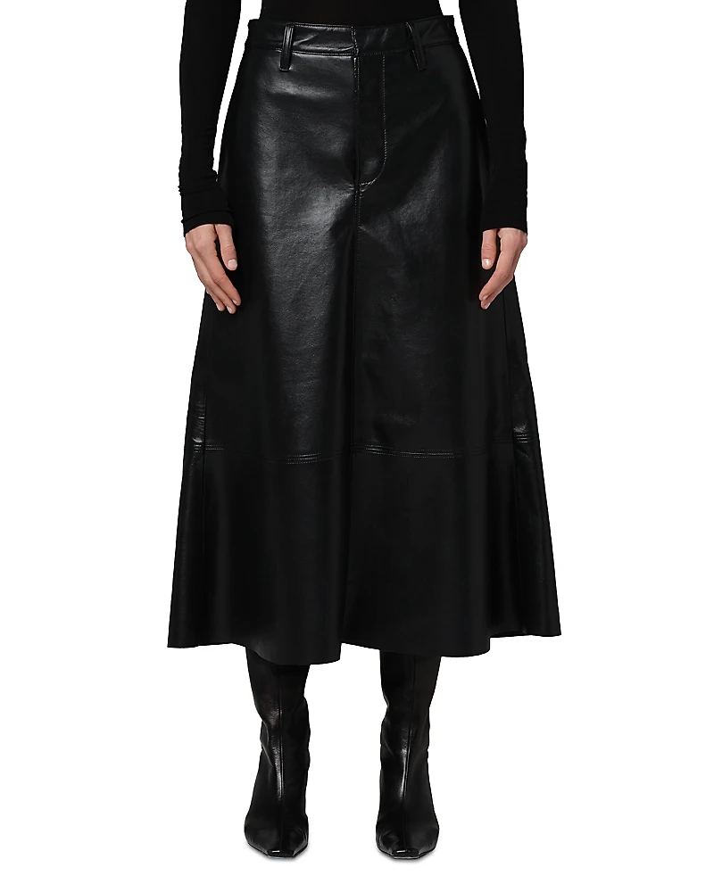 Crafted from panels of supple leather that are incredibly smooth in texture, this high-rise skirt pairs perfectly with a cozy sweater and knee boots.