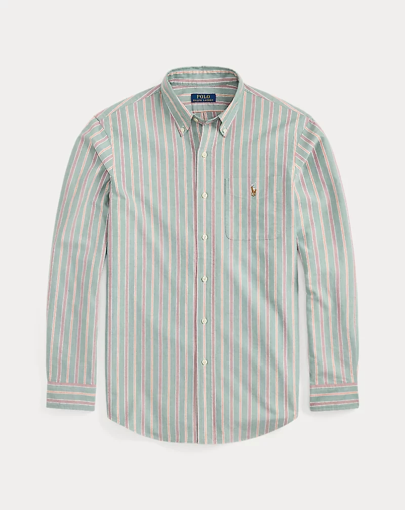 The oxford shirt made its debut very early on in Ralph Lauren’s designs, and since then it has solidified its status as a pillar of the Polo look. Our fabric is developed with a secret wash that gives it instant character, ease, and a heathered softness—what we call the perfect “rumple.” The formula is so unique, it’s been kept in a safe for more than three decades. Today, Mr. Lauren continues to create countless variations of his iconic shirt, including this striped version that is embroidered with our multicolored signature Pony.