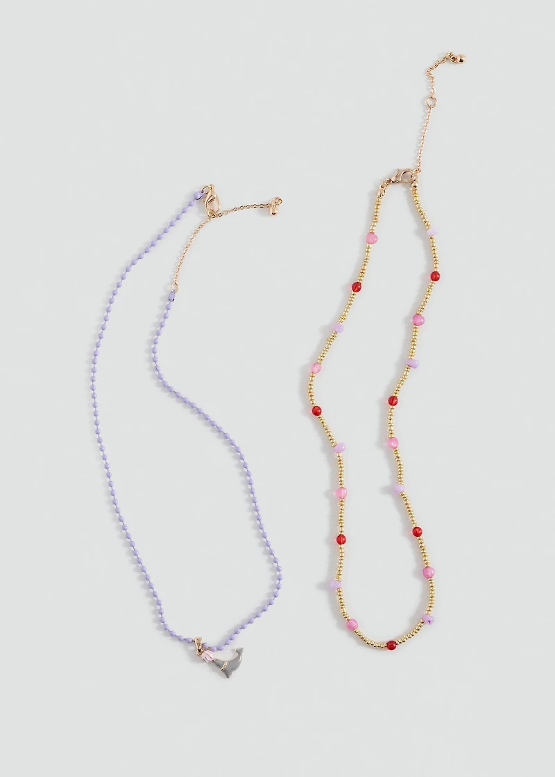Pack of two. Metallic design. Combined beads. Hook closure.