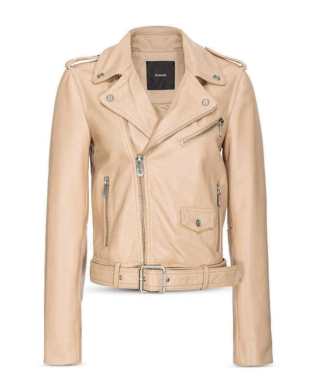 Short leather biker jacket