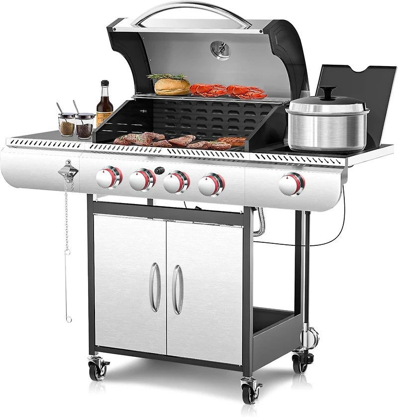 Shop Cowsar Bbq Gas Propane Grill 4 Burner Cast Iron Flat Grill Griddle Combo with Side Burner Stainless Steel 42000 Btu for Outdoor Cooking Backyard Barbe in Los Angeles, CA