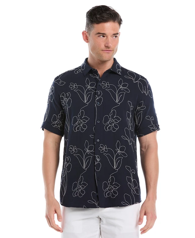 Cubavera Men's Embroidered Short Sleeve Button Down Shirt