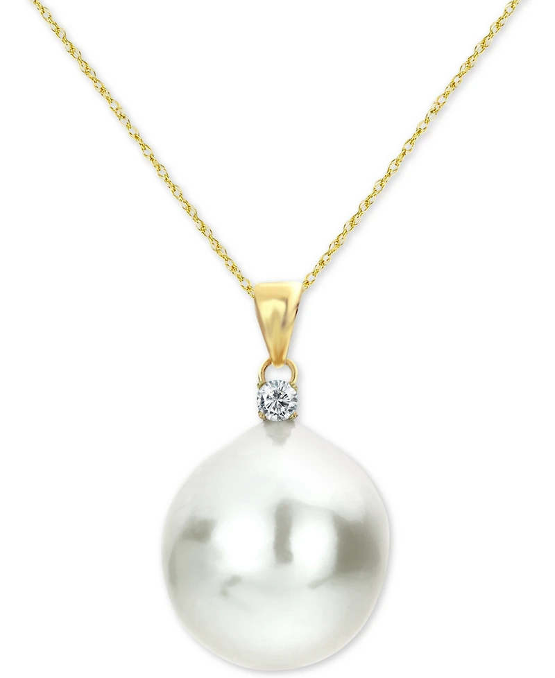 Shop Cultured Baroque Freshwater Pearl (12mm) & Diamond (1/20 ct. t.w.) 18" Pendant Necklace in 14k Gold in Los Angeles, CA