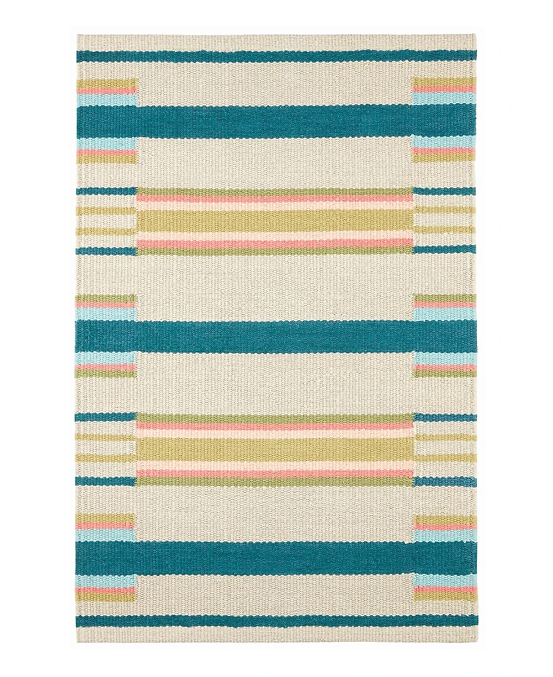 Handmade from 100% cotton, this flatweave dhurrie-style rug features a playful take on stripes and adds light texture and durability underfoot. Reversible and ideal for high-traffic areas, it's a low-profile option that brings a relaxed yet stylish feel to your home.