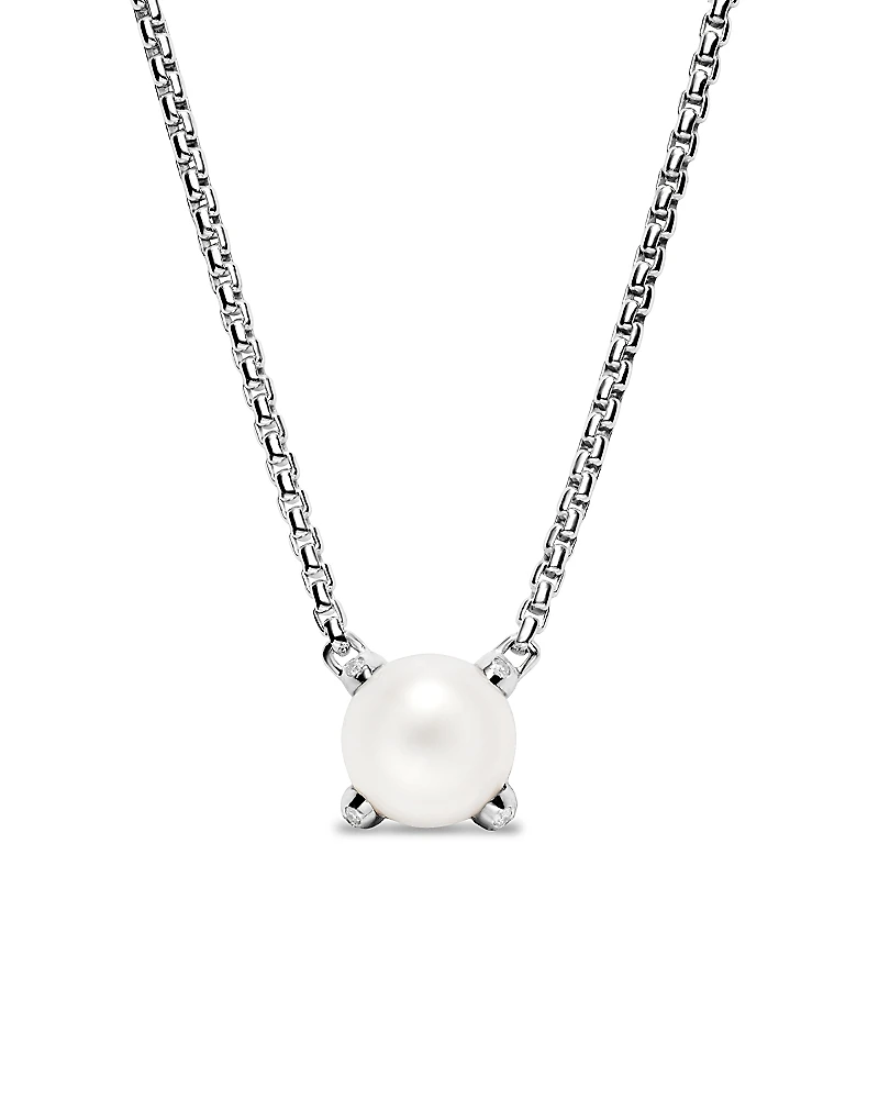 David Yurman Pearl Classics Necklace in Sterling Silver with Diamonds, 6.5mm