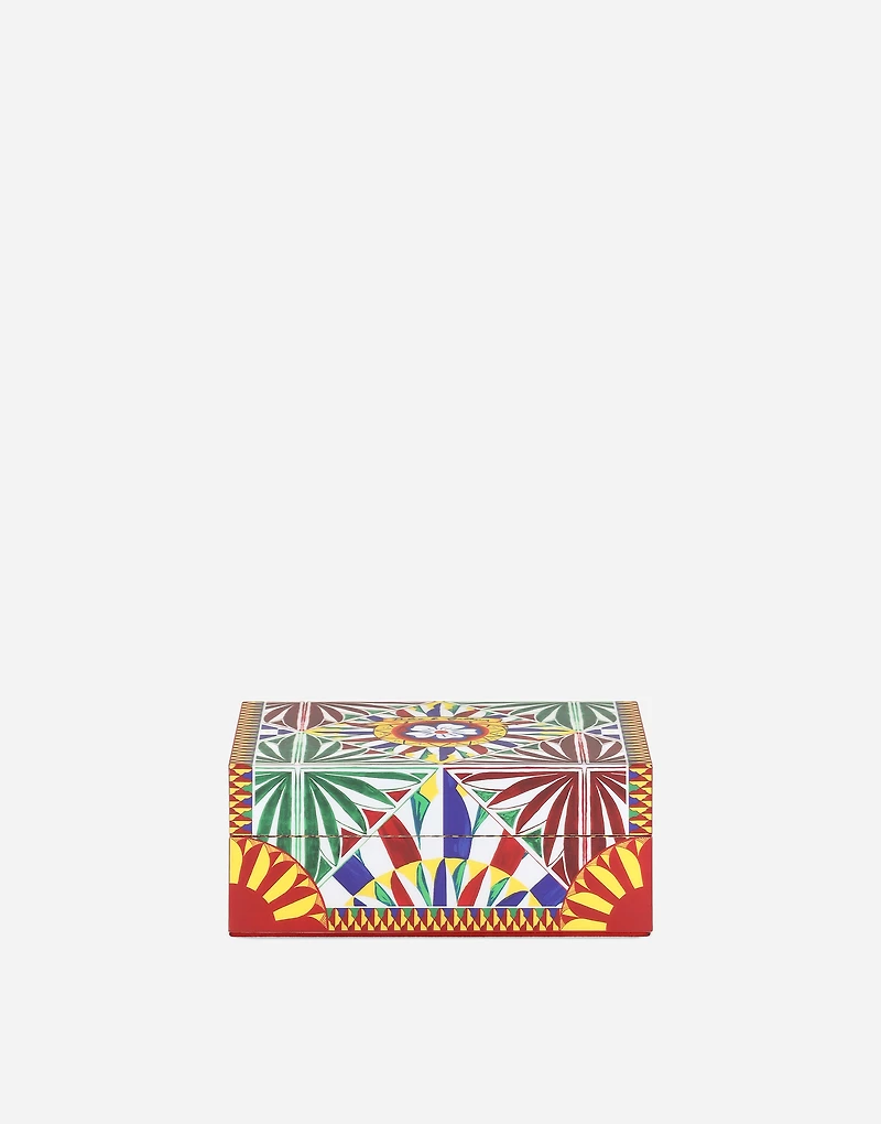 This large decorated box features a motif based on an archival foulard print that echoes the Carretto Sicilano: a folkloric element from a place of traditions, artistic craftsmanship, landscapes and unique colours which have always been at the heart of Dolce&Gabbana’s aesthetics.