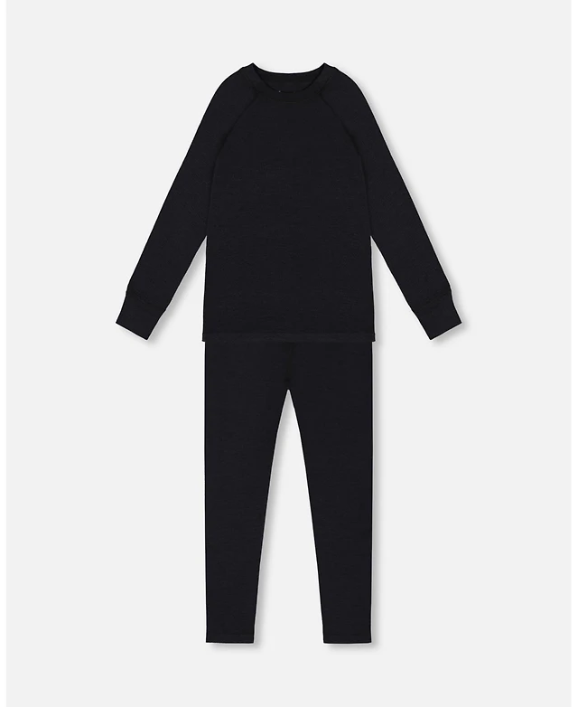 Deux par Kids Unisex Merino Wool Base Layer Set Black - Child