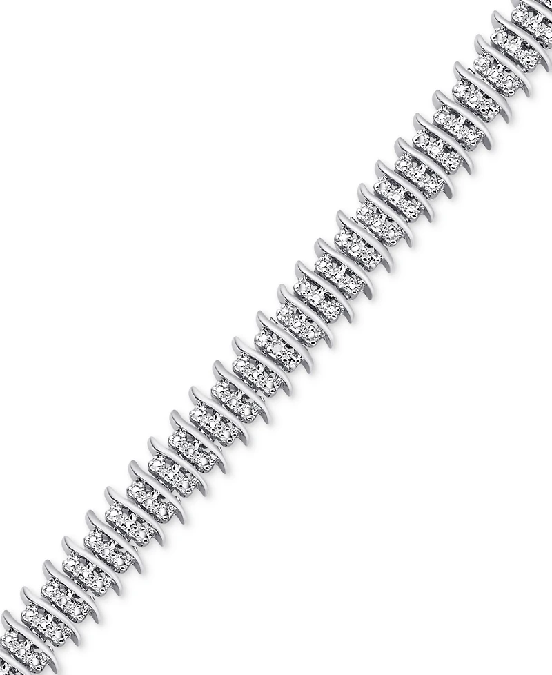 Look positively posh in the polished hues of this diamond accented wide link chain bracelet designed in gold-plated or silver-plated brass. Approximate length: 7-1/4"".