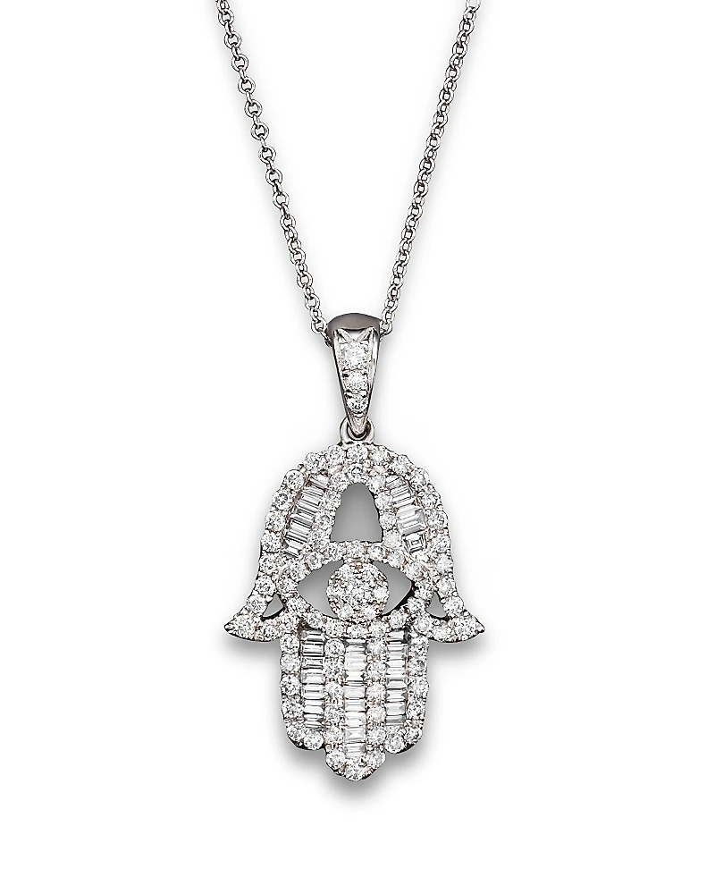 Shop Diamond and Baguette Hamsa Pendant Necklace in Los Angeles, CA