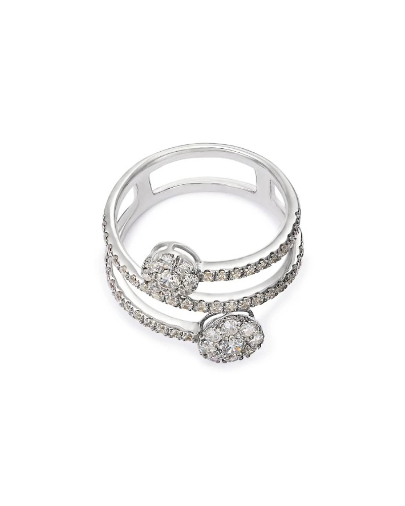 Diamond Flower Wrap Ring in 14K White Gold, 1.0 tcw