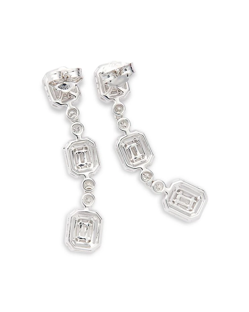 Shop Diamond Mosaic Round & Baguette Halo Drop Earrings in 14K White Gold, 1.0 tcw in Los Angeles, CA
