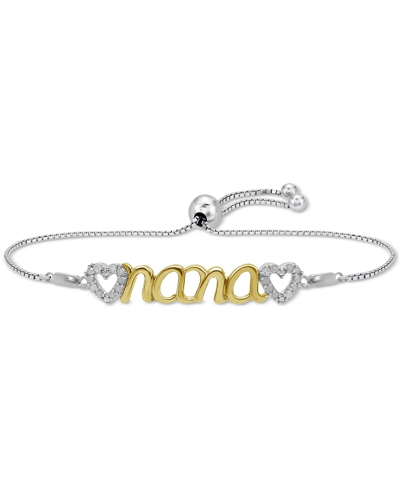 Diamond hearts and Nana script add sentimental shine to this pretty bolo bracelet.