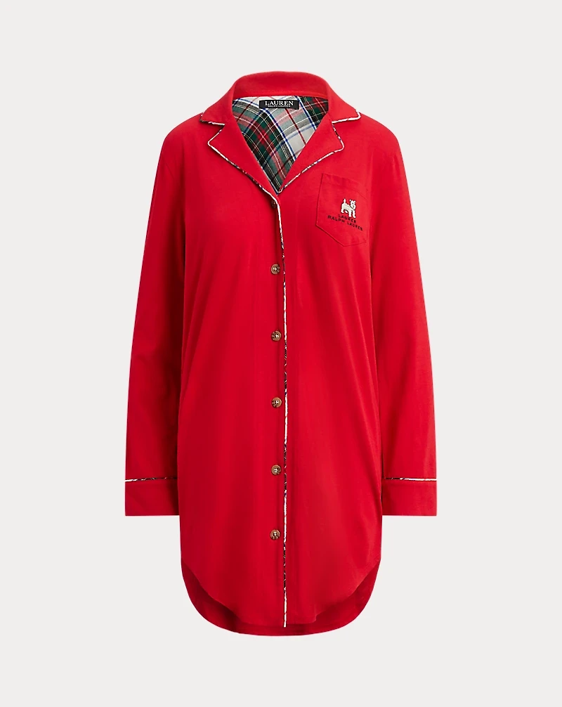 Trimmed with festive plaid piping, this sleep shirt is rendered in cotton-blend jersey for a comfortable night’s sleep. Lauren’s signature logo with a dog at the pocket completes the look.