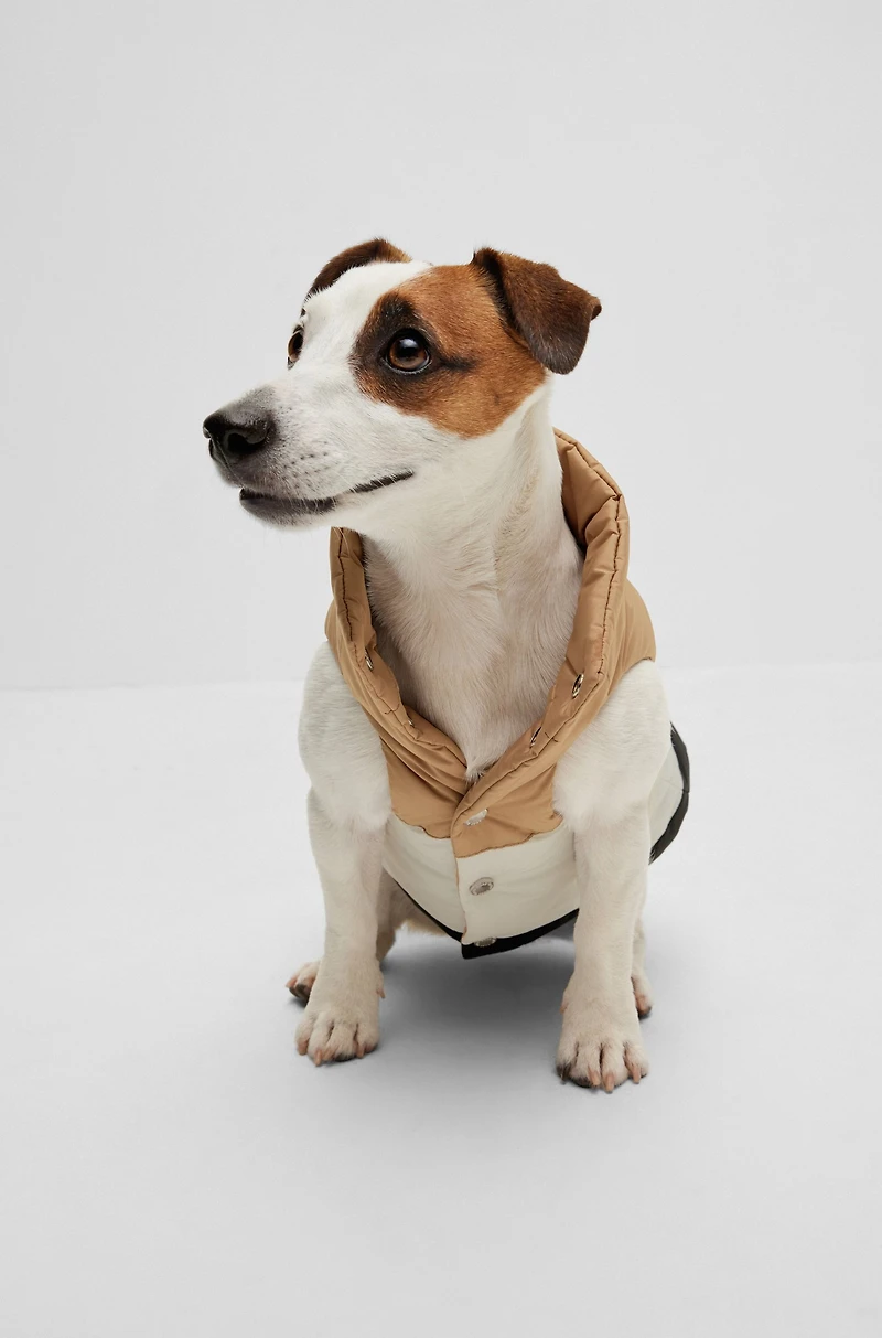 A easy-care puffer jacket for dogs from BOSS that offers two looks in one thanks to a reversible design. Securing with polished press-studs, the jacket is densely padded to keep your pet warm, and is crafted in quick-dry waterproof fabric. A wide stripe in the iconic BOSS colors delivers an instantly stylish look. XS fits dogs 23-27cm long, chest 33-37cm, neck 26-29cm (Chihuahua) S fits dogs 28-32cm long, chest 38-42cm, neck 31-34cm (small Terrier) M fits dogs 36-40cm long, chest 48-52cm, neck 36-39cm (Pug) L fits dogs 44-48cm long, chest 59-63cm, neck 47-50cm (Spaniel) XL fits dogs 51-55cm long, chest 69-73cm, neck 55-58cm (Border Collie) XXL fits dogs 59-63cm long, chest 84-88cm, neck 63-66cm (Labrador)