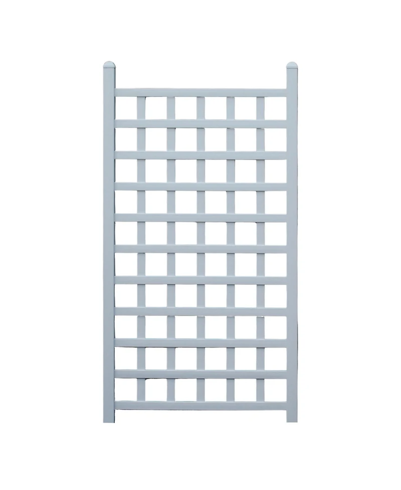 Get ready to start gardening like a pro with the Dura-Trel Country Garden 35 x 66-inch Trellis. Create an elegant theme for your garden, patio, or walkway by adding classic-style trellises that creeping vines and vegetables can hang onto. You can even use this lattice indoors to spice up the scenery in your home or plant room. Measuring 35 by 66 inches, this garden trellis is strong enough for outdoor plants, indoor plant pots, or climbing vines, and is an essential addition to your gardening supplies. This classic grid-style trellis can be leaned against a wall or placed freestanding by using the 2 included 14-inch ground anchors. Setup is quick and easy, as pieces are pre-cut and pre-drilled with all the hardware included. Crafted with durable Pvc, this trellis boasts the highest titanium dioxide concentration for unparalleled sunlight protection. Once assembled and installed in your yard, the only maintenance needed is a simple spray with a garden hose and wipe clean.