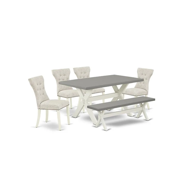 East West Furniture 6-Piece Kitchen Dining Room Set- 4 Parson Chairs with Doeskin Linen Fabric Seat and Button Tufted Chair Back
