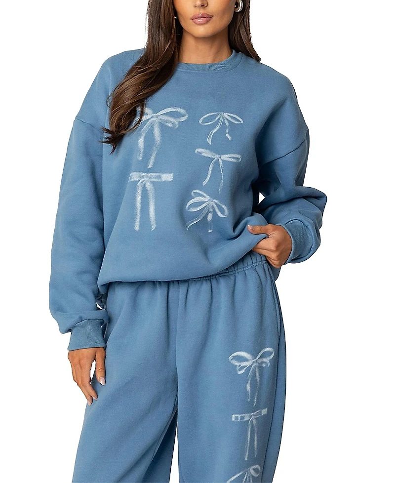 Edikted Bow Bliss Oversized Sweatshirt.Color:Blue.Size:XS.Material:60% Polyester, 40% Cotton.Hoodies & Sweatshirts.