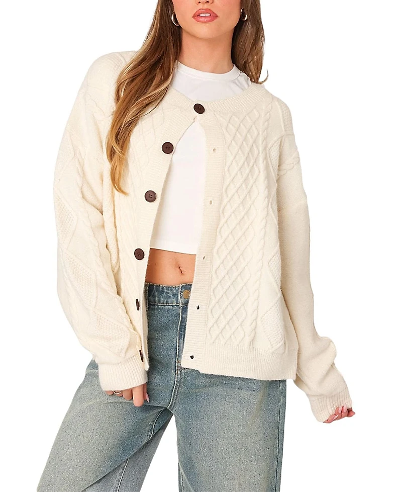 Edikted Rory Oversized Cable Knit Cardigan.Color:Cream.Size:XS/S.Material:50% Polyester 50% Rayon.Sweaters.