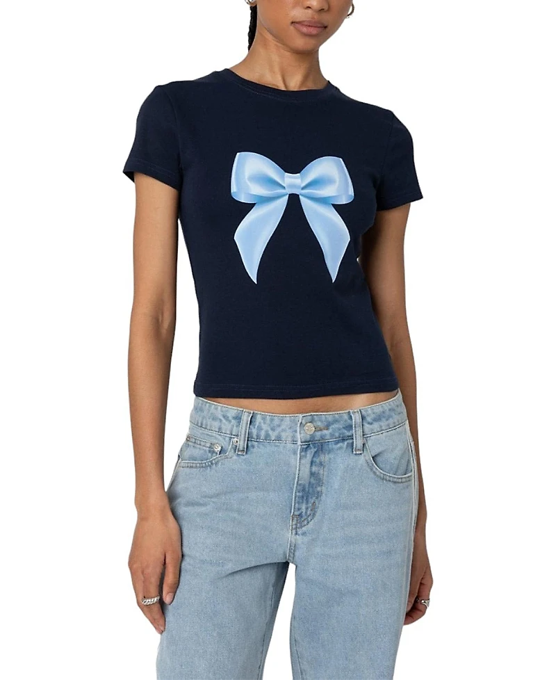 Edikted Tied Up Tee.Color:Navy.Size:XS.Material:95% Cotton 5% Spandex.Tees.