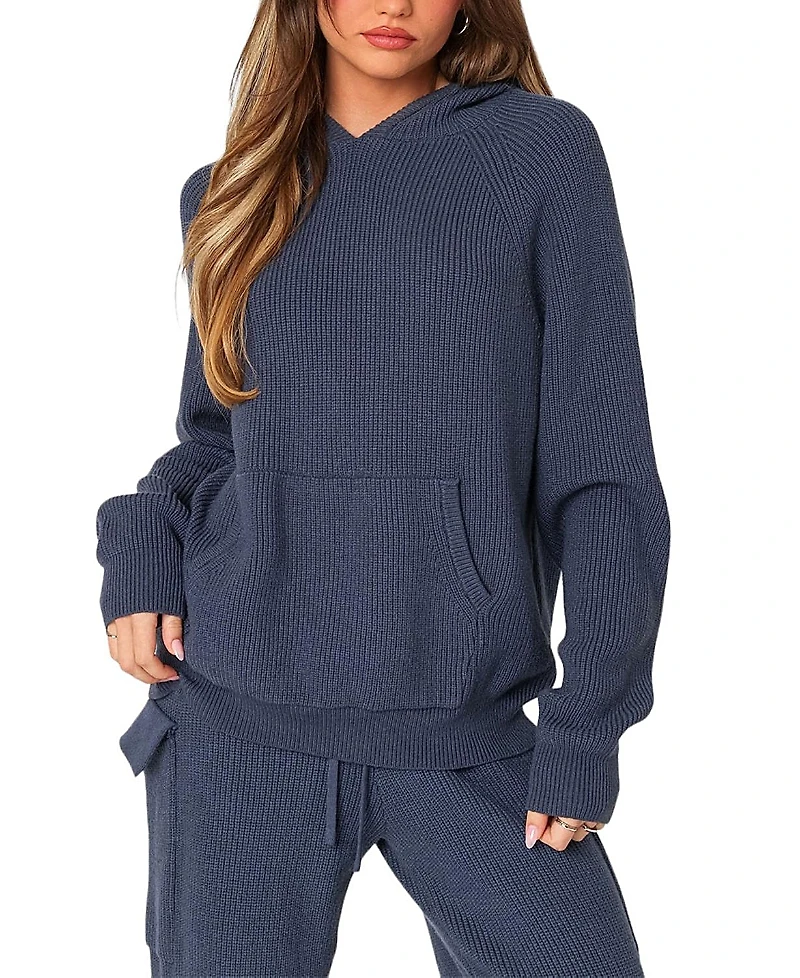 Edikted Wynter Oversized Knit Hoodie.Color:Blue.Size:XS.Material:50% Polyester 50% Rayon.Hoodies & Sweatshirts.