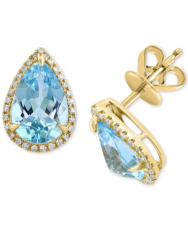 Effy Sky Blue Topaz (3-1/2 ct. t.w.) & Diamond (1/6 ct. t.w.) Pear Stud Earrings in 14k Gold