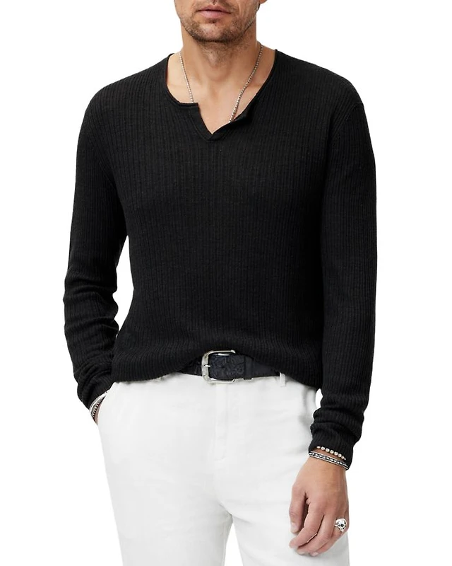 Bloomingdale's Fringed Cotton V Neck Sweater
