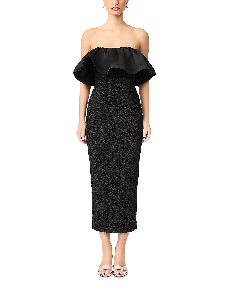 Elliatt Dandelione Midi Dress.Color:Black.Size:XS.Material:100% polyester; lining: 92% polyester/8% spandex; contrast: 100% polyester.Dresses.