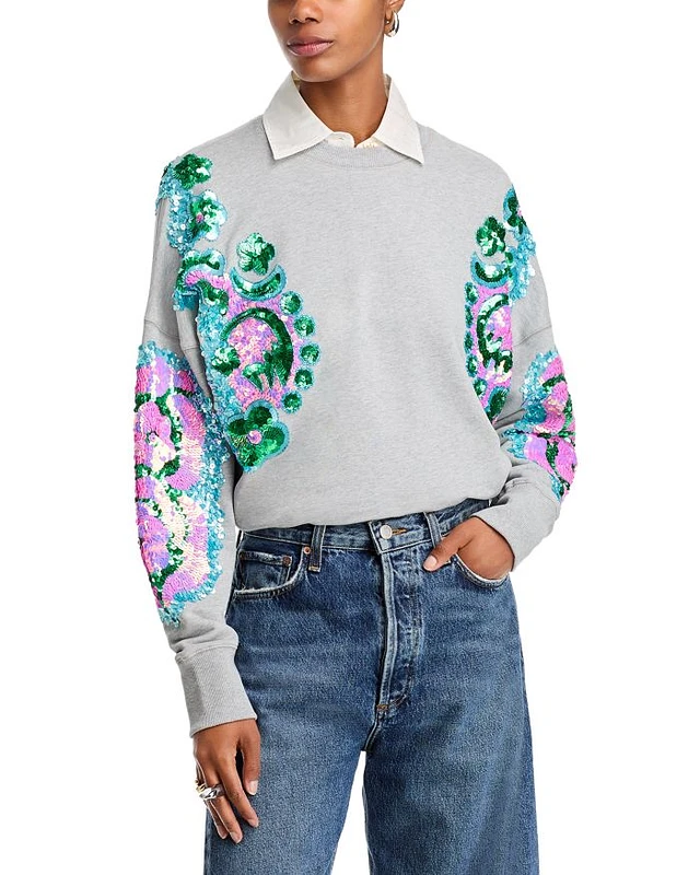Driftwood Women's Embellished Embroidered Cotton Crewneck Sweatshirt