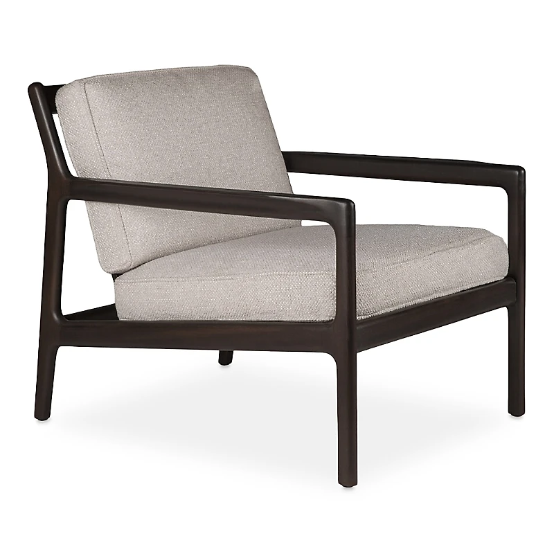 Ethnicraft Jack Lounge Chair.Color:Mahogany Dark Brown w/ Ivory Cushion.Material:Frame: wood; upholstery: 78% polyacrylic/20% polyester/2% viscose; polyurethane foam.