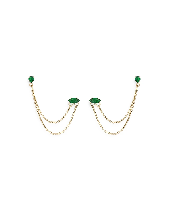 Gold Plated Sterling Silver Cubic Zirconia Chain Double Earring