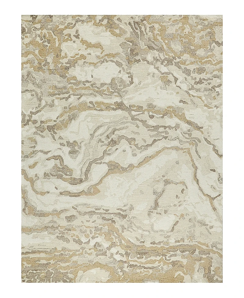 Hand Tufted of 100% wool this dense construction features overlapping design, creating the look of a marble-inspired design. The bands of color vary in thickness and intensity, adding a realistic touch to rug. Its soft edge, abstract design in muted washes of colors makes it a stunning addition to any interior space.
