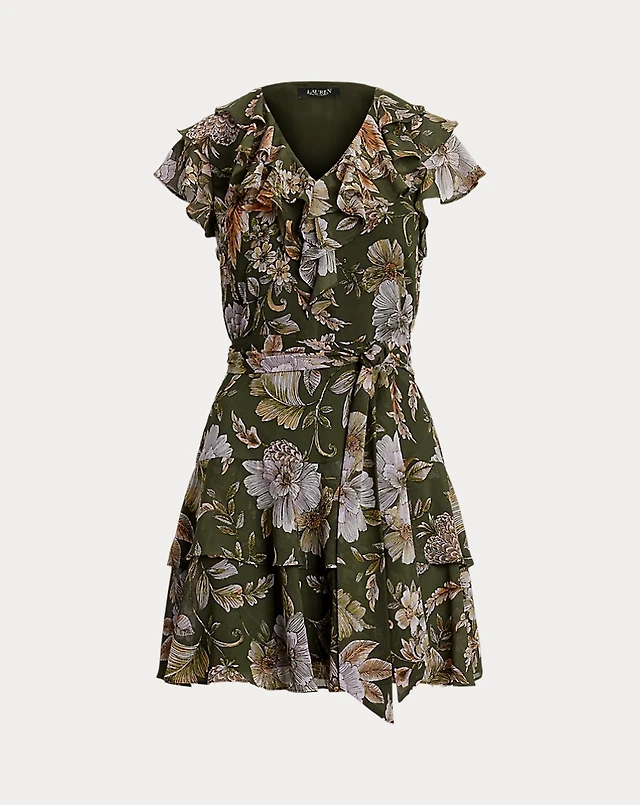 Lauren Ralph Women's Floral Crinkle Georgette Tiered Dress
