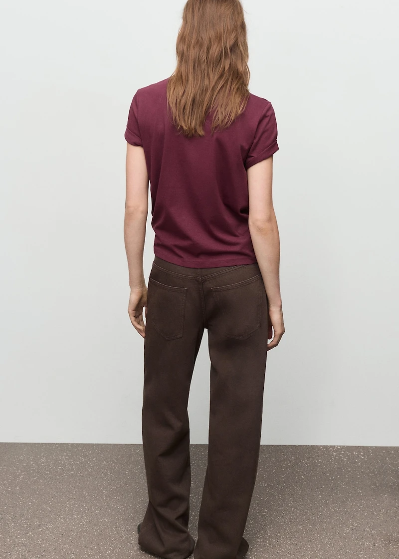 Cotton fabric. Straight design. Floral embroidery. Crew neck. Short sleeve.