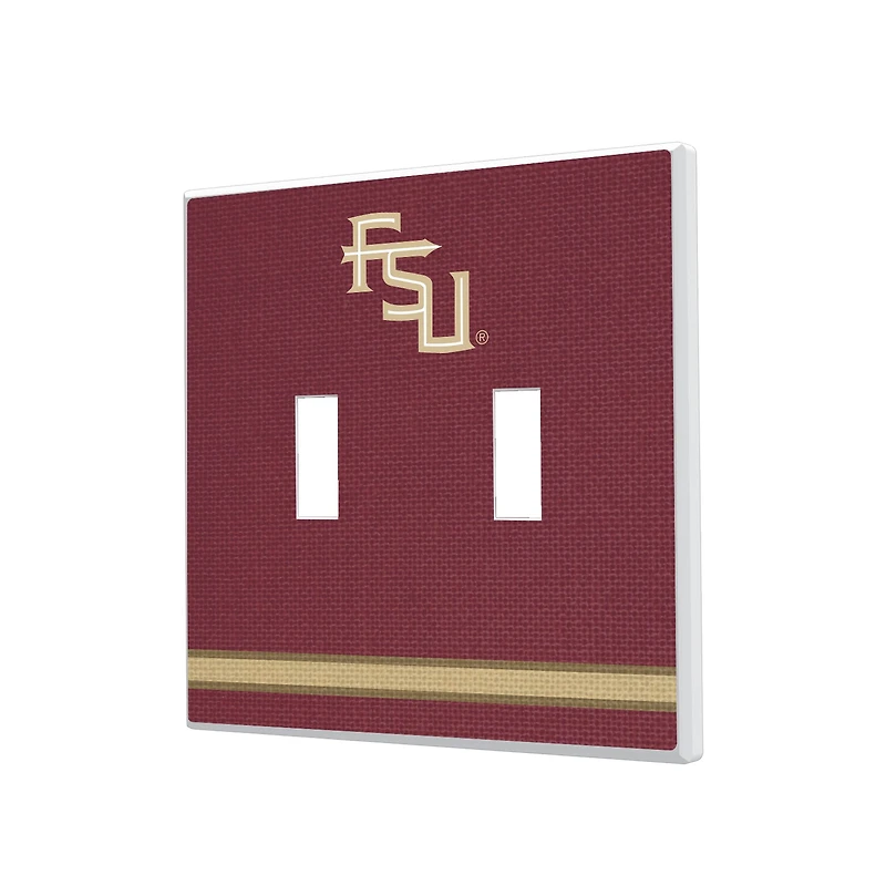 Take your Florida State Seminoles collection to the next level with this Stripe Design Double Toggle Lightswitch Plate. The printed graphics make this accessory a must-have in your home, office or fan cave. No one will doubt your Florida State Seminoles fandom with this epic piece on display.