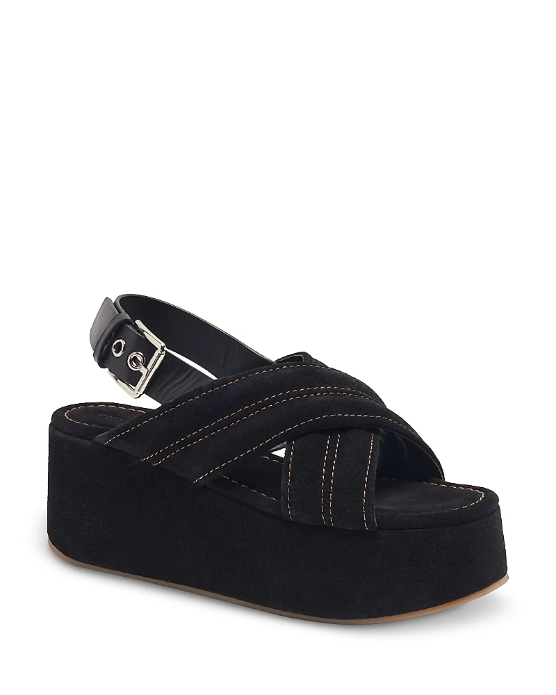 Free People Women's Beach Party Platform Sandals.Color:Black Suede.Size:6.Material:Suede upper, leather lining, rubber sole.