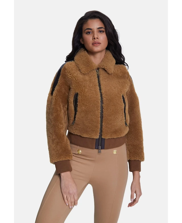 Furniq Uk Women's Leather Sheepskin Jacket, Brown, Created for Macy's