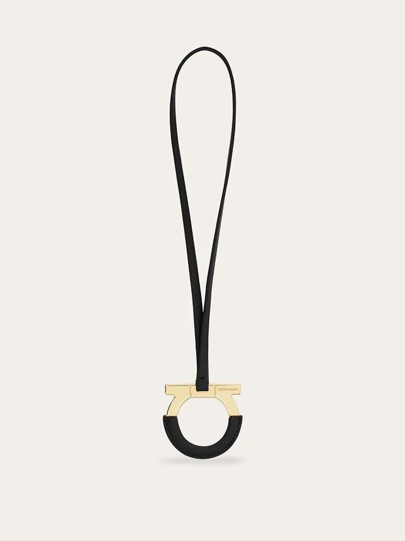 The perfect add-on for your favorite bag, this charm features the iconic Gancini silhouette with an engraved signature and a partial leather-covered finish. Choose your favorite shade and have fun styling it your way.