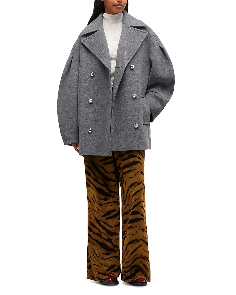 Ganni Oversized Peacoat.Color:Pewter.Size:34 EU/ 2 US.Material:80% wool/19% polyester/1% nylon.Coats.