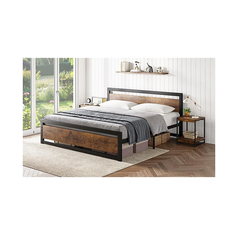 Sturdy and Durable - This metal full bed frame is made of heavy-duty steel slats to prevent sagging. And this platform bed with 9 support legs and 12 strong steel slats, an Industrial wooden grain headboard, and a footboard to ensure adds better support to your mattress. The full bed frame with headboard can stand up to 700lbs capacity.