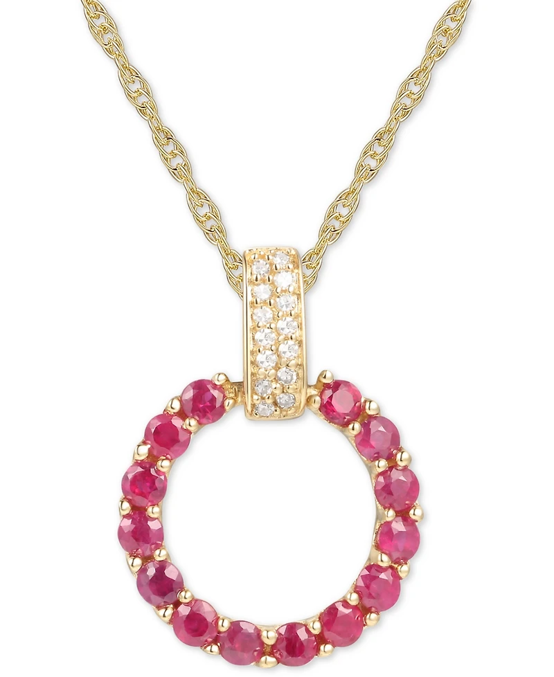 Shop Gemstone & Diamond (1/20 ct. t.w.) Circle 18" Pendant Necklace in 14k Gold in Los Angeles, CA