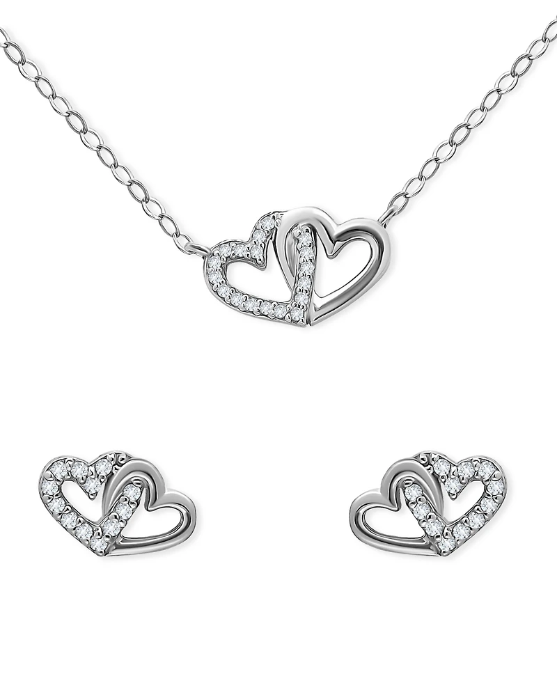Giani Bernini deals in love with this sparkling double heart jewelry set, including a polished and cubic zirconia pendant necklace and matching stud earrings.