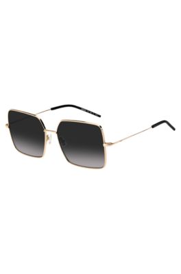 Elegant sunglasses by BOSS, crafted in lightweight gold-tone steel with branded temples and black end-tips for modern contrast.