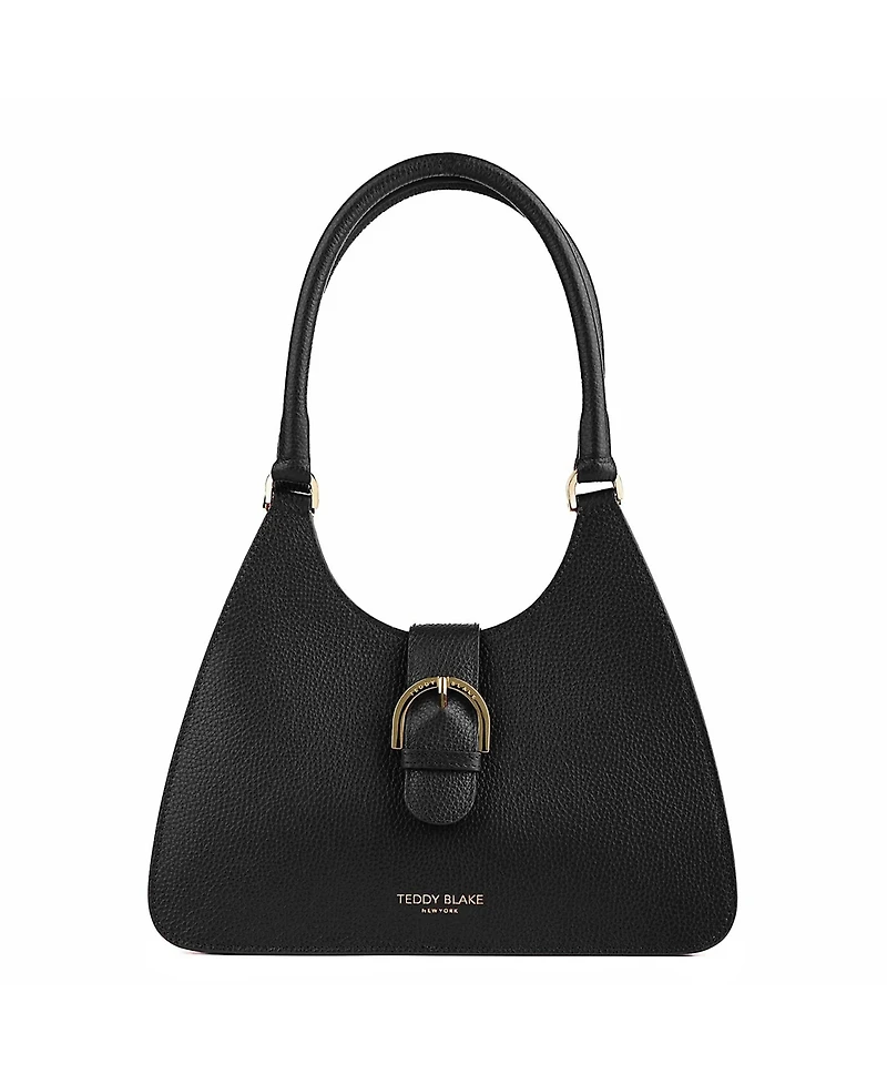 A refined handbag with a sleek, structured shape and polished details. The curved top handle offers a comfortable grip, while the gold