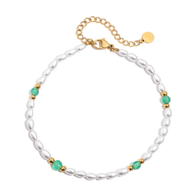 Adornia Tarnish Resistant Gold Freshwater Pearl Figaro Chain Anklet