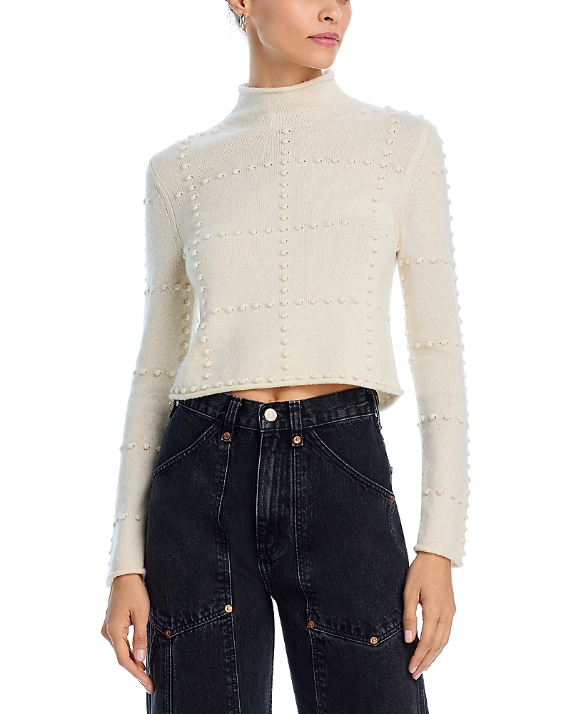 Guest in Residence Popcorn Mock Neck Sweater.Color:Cream.Size:XS.Material:70% Wool/30% cashmere.Sweaters.