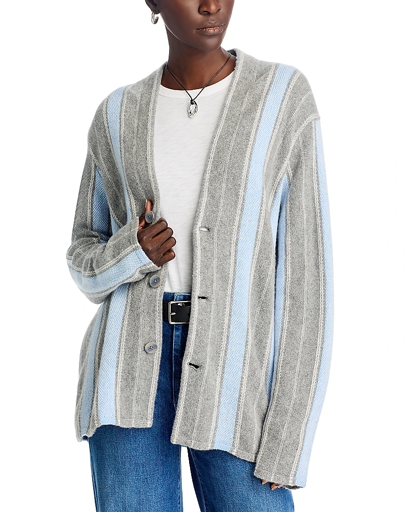 Guest in Residence Everywear Cashmere Cardigan.Color:Heather Grey Cream Blue.Size:XL.Material:100% cashmere.Sweaters.