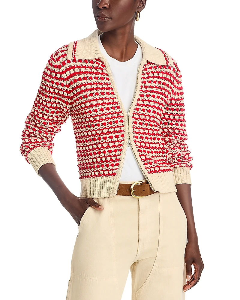 Guest in Residence Kirby Knit Jacket.Color:Cream Red.Size:XXL.Material:Cotton/polyamide.Jackets.