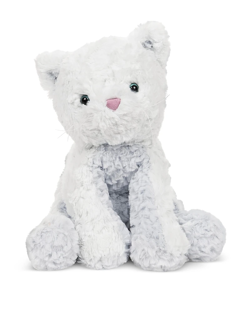This adorable Gund cat stuffed animal sits 10" tall and features blue eyes, a sweet nose, soft, floppy limbs, and uniquely rippled plush. It also has a slightly under-stuffed body that makes hugs feel even sweeter!