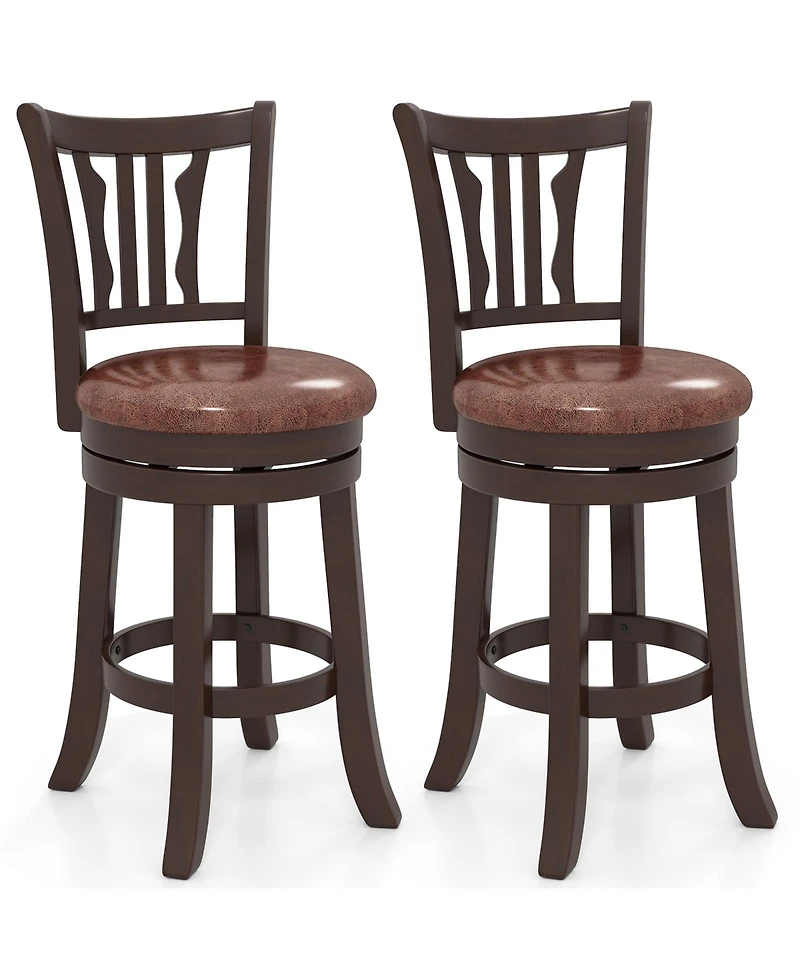 Gymax 26'' Counter Height Swivel Bar Stools Set of 2 w/Back & Faux Leather Seat
